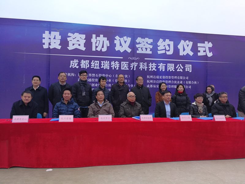 2月11日,成都纽瑞特医疗科技有限公司投资协议签约仪式在成都隆重举行。和美易通集团旗下成都易安心企业管理服务有限公司作为投资机构之一,由黄弢先生代表公司签署投资协议,董事长李虎兵先生出席。同时出席签约仪式的投资机构有:深圳大墨磐石投资中心、嘉兴鼎越投资合伙企业、杭州贵巨创业投资合伙企业、杭州睿楠投资管理合伙企业、杭州达睿夏鼎投资管理有限公司、杭州谷启投资管理合伙企业。