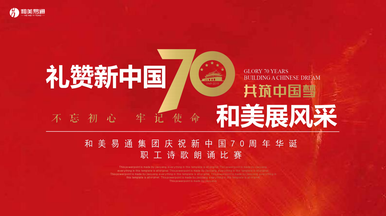 和美易通集团将积极响应党和国家的号召,牢记初心使命,砥砺行稳致远,坚持不懈推进战略转型和管理变革,以“让生活多一份和美”为发展使命和愿景,不断夯实创新开拓能力,实施多元化发展战略,聚焦经济社会、产业行业、百姓生活等发展需求,矢志不渝研发创造多领域、宽维度、优品质的“和美产品”与“和美服务”,拥抱新时代,展现新作为,再谱新篇章,以优异业绩献礼新中国成立70周年!